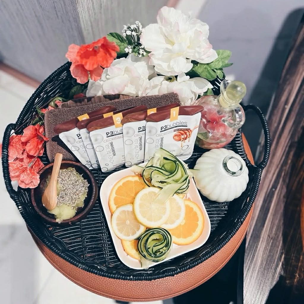 Experience a bubbling,effervescent detox with volcano crystal soak, followed by a gentle sugar scrub. Rejuvenate with an exfoliating organic collagen mask, then nourish deeply with collagen lotion and a warm paraffin wax treatment.